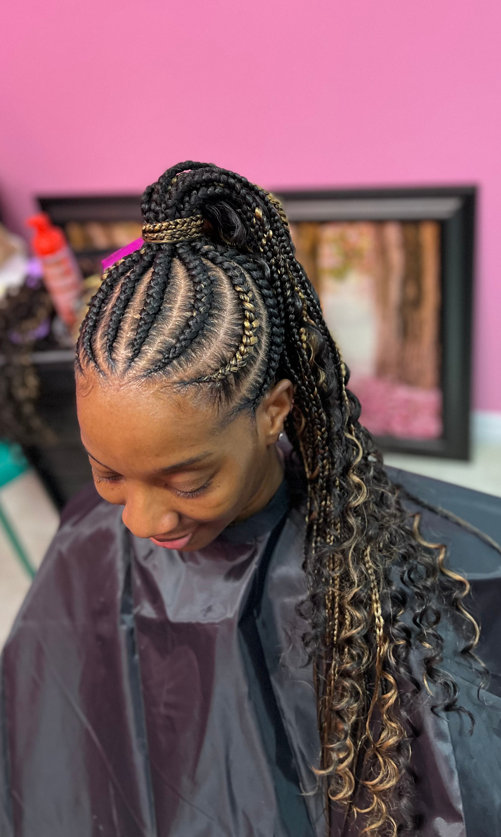 Introducing Kelly your favorite versatile hairstylist, with over 10 years of industry experience. She is a knotless braids specialist, providing her clients with neat, lightweight, and tension-free installs.